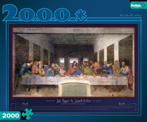 Buffalo Games Last Supper By Leonardo da Vinci Jigsaw Puzzle FREE fold-out poster makes a great guide for assembly 2000 Pieces 38" X 26" Ages 12+ In 1495 Leonardo da Vinci was commissioned to paint the Last Supper, which took four years to complete. Wanting the painting to be extraordinarily brilliant, Leonardo experimented with an egg-based tempera instead of a traditional fresco technique. Sadly, the tempera degraded almost immediately, and much detail was lost forever. Restoration efforts continue to the present day. The Last Supper is considered one of the master works of human history.