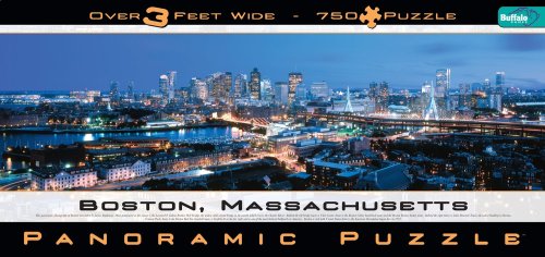 Buffalo Games Boston Massachusetts Jigsaw Puzzle 750 Piece Panoramic Puzzle 38.25" X 11.25" Ages 12+ Boston Cityscape - Most prominent in the James Blakeway photograph is the Leonard P. Kakim Bunker Hill Bridge, the widest cable-stayed bridge in the world. Boston is rich with United States history and the American Revolution began here in 1770.